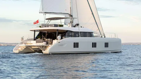 A power catamaran combines the stability and spaciousness of a sailing catamaran with the speed and convenience of a motorised yacht. The twin-hull design ensures a smooth ride even in choppy waters, while the absence of sails allowing for more expansive, unobstructed deck spaces perfect for lounging and entertaining.