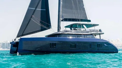 A power catamaran combines the stability and spaciousness of a sailing catamaran with the speed and convenience of a motorised yacht. The twin-hull design ensures a smooth ride even in choppy waters, while the absence of sails allowing for more expansive, unobstructed deck spaces perfect for lounging and entertaining.