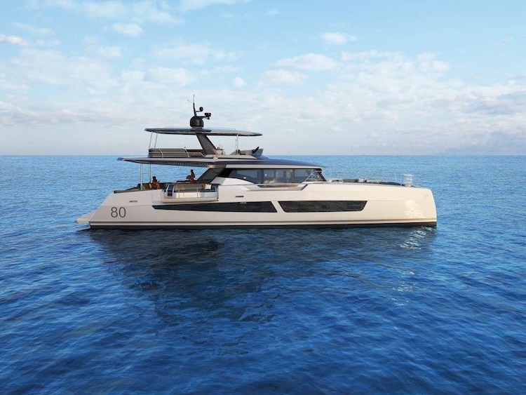 A power catamaran combines the stability and spaciousness of a sailing catamaran with the speed and convenience of a motorised yacht. The twin-hull design ensures a smooth ride even in choppy waters, while the absence of sails allowing for more expansive, unobstructed deck spaces perfect for lounging and entertaining.